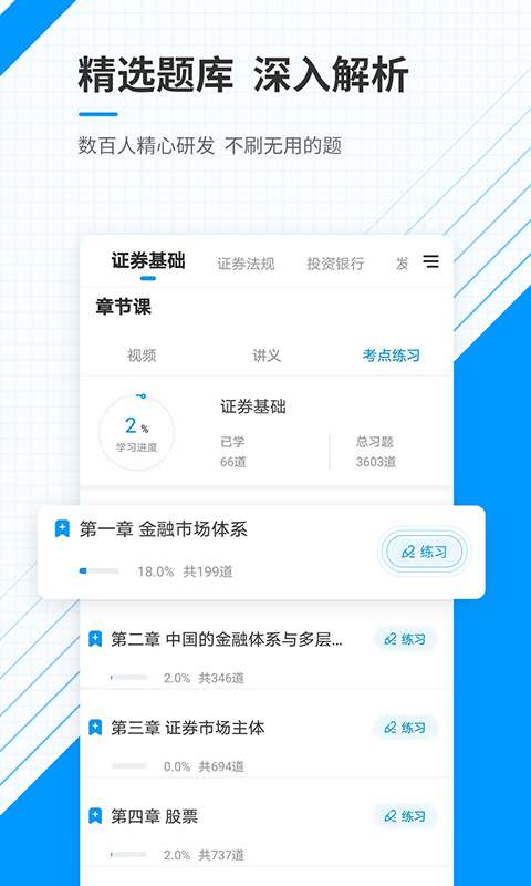 1、章节同步学习:根据官方教科书的章节结构组织题库,支持“学习一章,实践一章”,夯实基础。