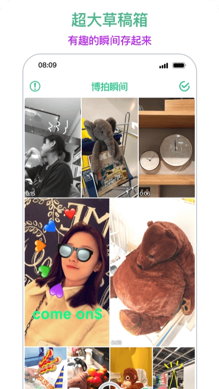博拍是一个与朋友分享生活日常的手机应用,帮助你更轻松快捷的记录生活的瞬间,并分享给身边最熟悉的朋友。