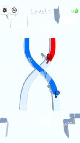 3、随时注意变化中的小人,根据自己的颜色变化覆盖不同的道路吧!