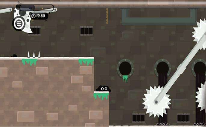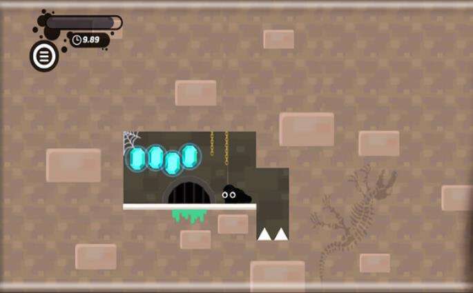 小黑要活着这里为什么叫小黑?要活着是因为玩家们控制的一个角色,就是一个黑色的小怪物,他就像液体一样,可以随心所欲的变身。想要控制她去完成关卡挑战,则需要不断地去左右点击移动,她在游戏界面中看她就像是一团黑色的墨水。观察的通道中二放置很多的障碍物,比方说随机移动的齿轮,还有就是地上凸起的尖刺。