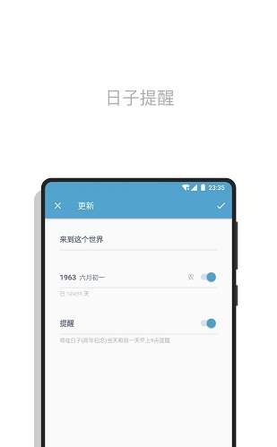 支持纪念日,生活,工作等多种类型日子提醒;