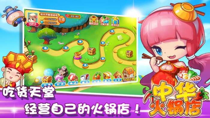 火锅乐翻天在这里玩家们是一家火锅店的老板而且还是一个美女老板,在地图上面已经设定好的所有的挑战关卡只用按着上面解锁的顺序去闯关就好了,每一次的挑战中都会有新的食材还有就是一些厨房的用具可以解锁使用。在挑战中主要的任务就是根据客人们的点单还有一些饮料的要求开始完成制作,在吧台上面会有不同的食材已经准备好了只用等待订单的出现然后开始丢进锅中煮熟就可以了。
