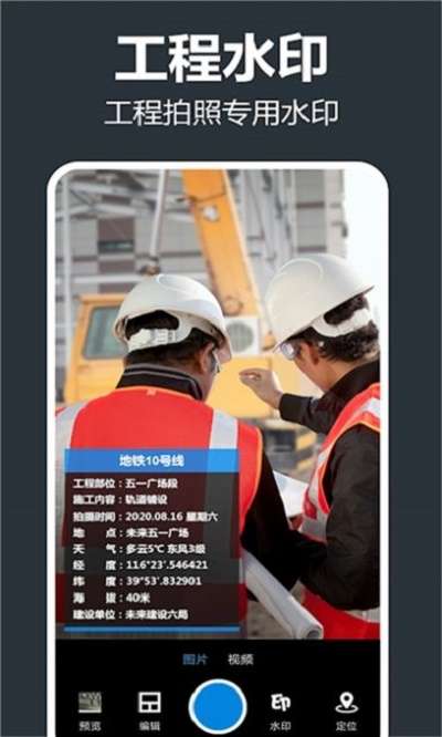 2.时间,天气,经纬度,工程,食品,旅行相机水印。