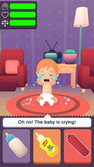 没有真正的哭,没有发脾气,没有在墙上乱涂乱画,没有给宝宝洗澡的必要,玩家能够一键体验这一切。