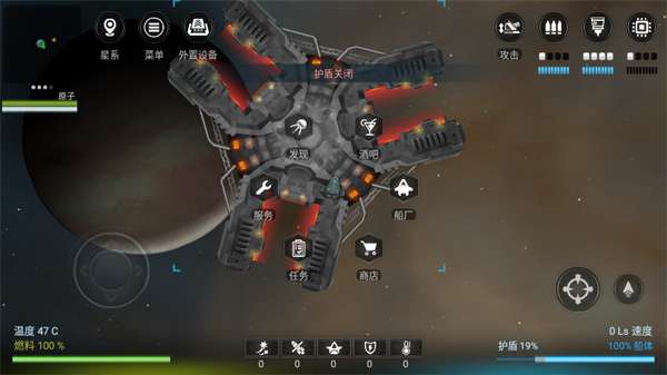 自动攻击:点击攻击显示武器系统然后选择一个目标,最后点击自动驾驶。