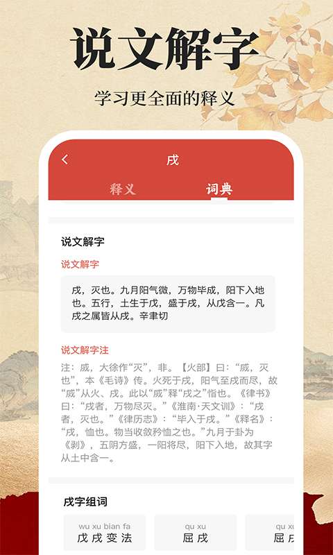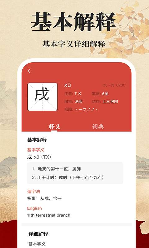 5、属性详解,全面掌握:提供汉字笔画、部首、释义等详细信息,帮助用户深入理解汉字文化内涵。