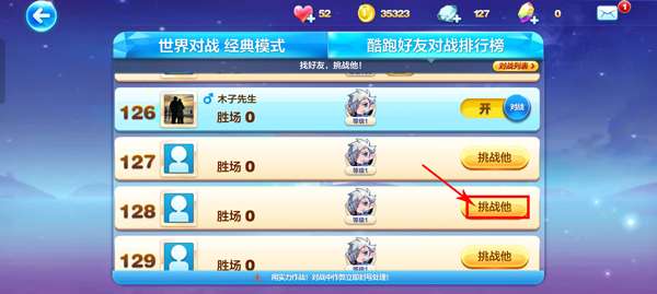 4、选择你想挑战的好友,点击【挑战他】就可以进行挑战了。