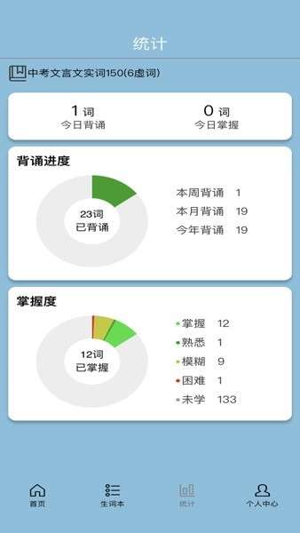 6、完成背诵后,用户可查看自己的学习数据统计,了解学习进度和效果。