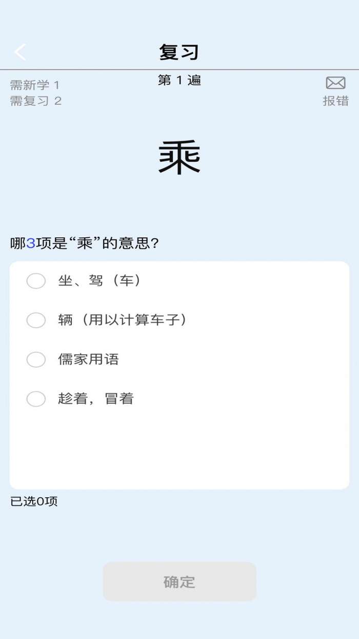 2、练习模式:提供多项选择题、填空题等多种练习模式,帮助用户巩固所学知识。
