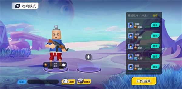 1、下载安装好拉罐大作战,运行游戏,选择吃鸡模式,游戏中还有其他的游戏模式,开始匹配;