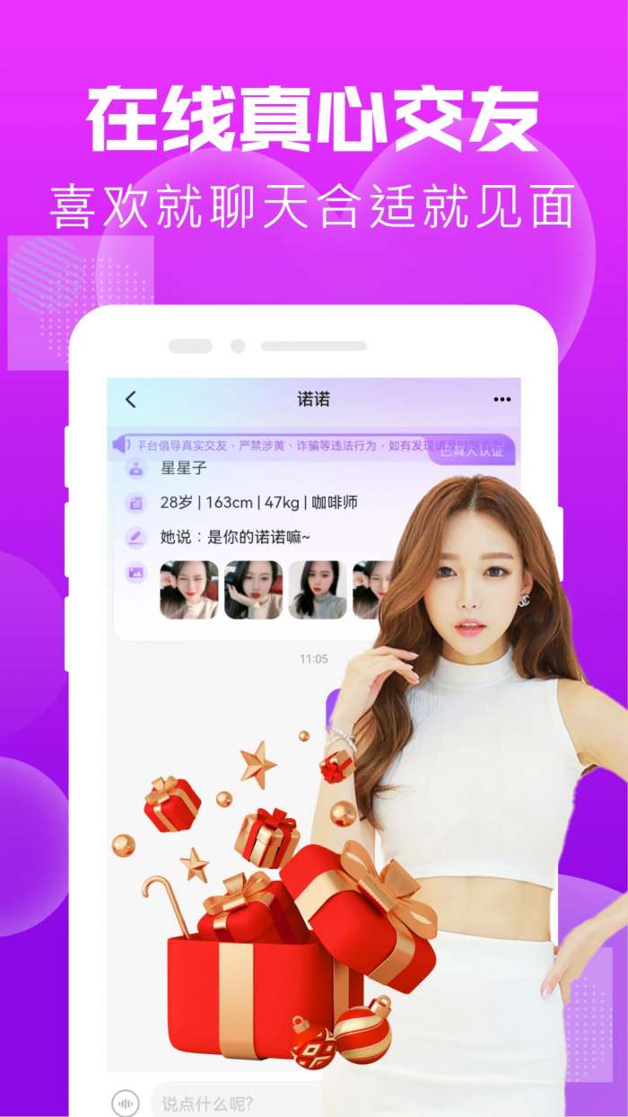 附近陌友泡泡聊是一款集附近交友、同城交友、视频聊天、视频交友、交友、社交、聊天、交友于一体的交友软件。通过实时视频互动,解决陌生人社交,打破坚冰。可以快速匹配探索同城附近的陌生朋友,在线交友,拥有全新的陌生聊天交友模式,24小时在线互动聊天,精心挑选让你心动的同城单身异性,在线与大量陌生人自拍,拥有大量真实用户,更有利于在附近的约会场所CP和面对面交流。这里的TA和你一样,急需找到一个伴侣,抚慰我们孤独的身心。