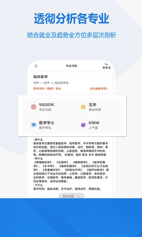 3、大学和专业数据库:覆盖全国3000多所大学和700多个本科专业,包括就业前景、学科评估和特色专业信息。