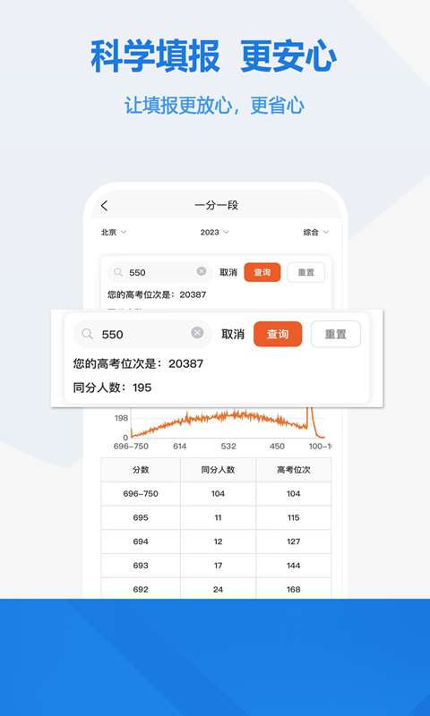 1、每段一分分析:准确确定候选人的省级排名,结合排名转换,科学评估录取概率。