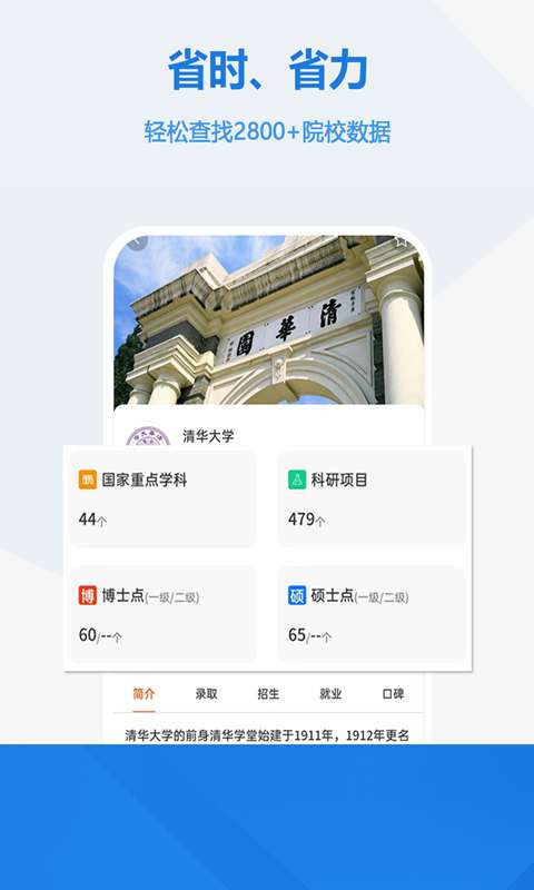 2、数据权威:与教育部和省级教育考试机构的官方招生计划和历史录取成绩同步,实时更新。