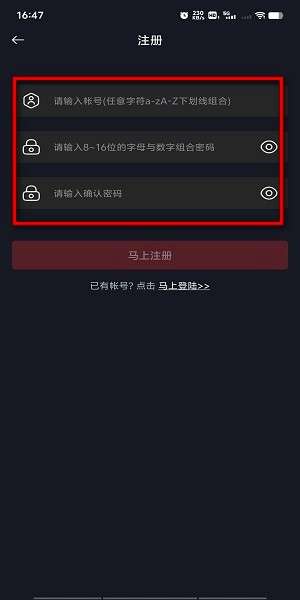 4、如果是新用户,就点击“马上注册”,输入账号和密码,完成注册。