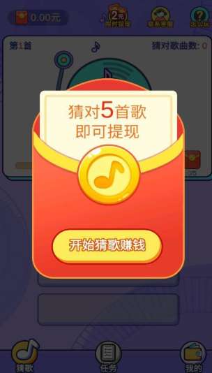 猜歌有钱赚app不仅可以享受猜歌的乐趣,还可以赢得红包和现金。曲柴歌红包版系统会自动播放各种未知的歌曲片段。玩家需要从给定的选项中选择正确的歌曲名称。你连续猜对的歌曲越多,奖励就会越丰富,而且可以在零门槛和极快的速度下收回。我们也为大家准备了丰富多彩的活动任务。任务模式简单,每个用户都可以在应用中轻松完成,满足每个用户的个性化体验需求。它拥有丰富的音乐库,包括大量的经典曲目,当前流行音乐,在线音乐和抖音流行歌曲,满足不同用户的音乐品味。
