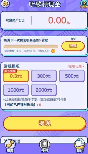 3、拥有非常丰富的歌曲库。玩家可以在游戏中随时自由试听歌曲,并达到一定的提现限额。