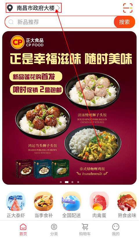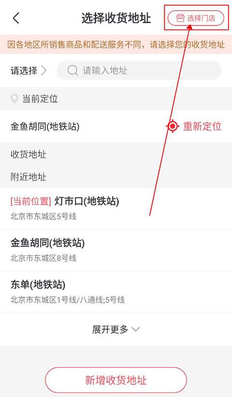 修改完地址后用户需要在地址页面,点击右上角的“选择门店”,选择一个离自己最近的门店进行购物。