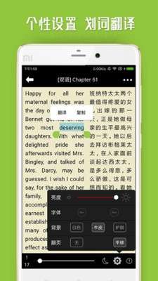 3、还可以成为英语学习的得力助手,当读者点击某个英文单词时,软件会弹出详细的词性、词义、例句等信息,就像随身携带了一本电子词典。