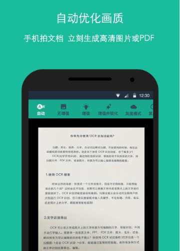 手机拍文档,自动去除杂乱背景,生成高清JPEG图片或PDF文件。