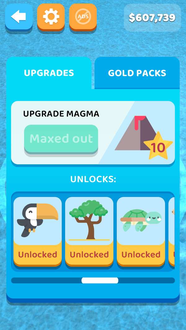 火山小岛在这里有一座在海上的火山他十分的活跃,是不是就会喷发出岩浆来,周边海域生存的海洋城武以及鸟类都很少。但是因为你的到来可以改变这里的一切玩家们根据自己的挑战经验来达成新的成就,首先大家要做的就是升级这座火山利用他的喷发周期来设定一些新的生物在岛上。因为岩浆在流入海水会有快速的冷却时间,不就就会成为礁石可以尝试在上面安排一些生物了。