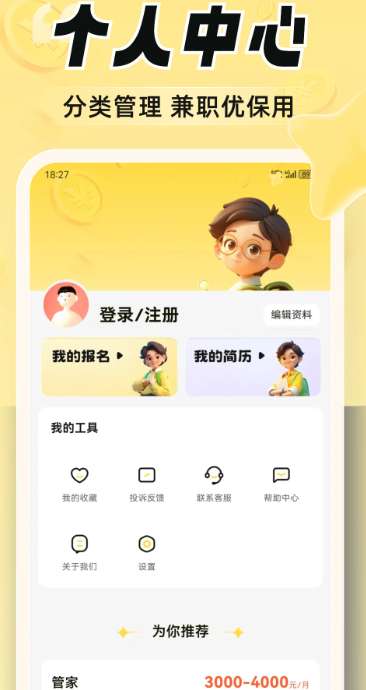 在个人中心,用户可以发布简历来展示自己的优势和经历。