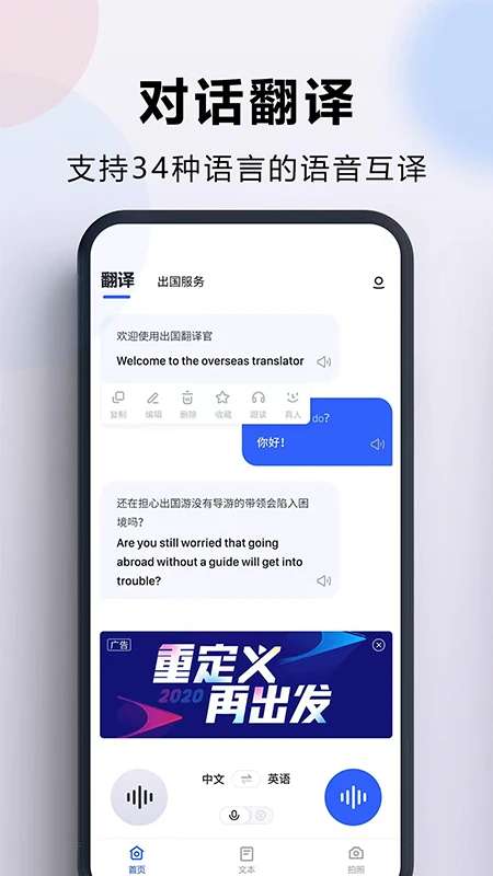 2、提供实时双向语音识别和翻译功能,使用户无需学习外语即可与当地人顺利交流。