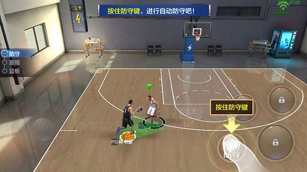 3、盖帽:敌人在面前投篮时可点击盖帽按键,在敌人面前扇形区域内起跳盖帽成功率较高。
