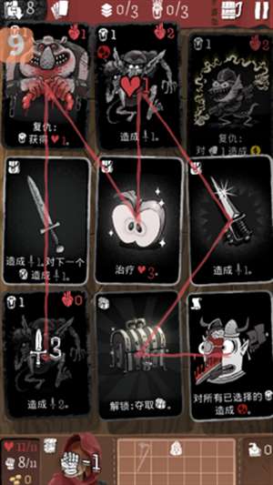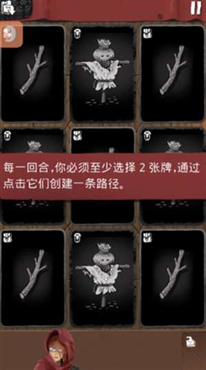 2、每一回合,必须至少选择2张牌,通过点击它们创建一条路径。