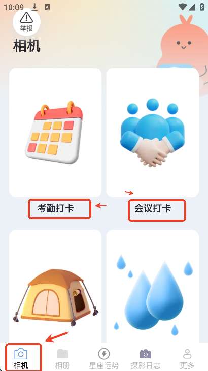 1、用户们可以在多种场景下拍照记录当下状况,有外出考勤,工作会议,户外拍摄等。