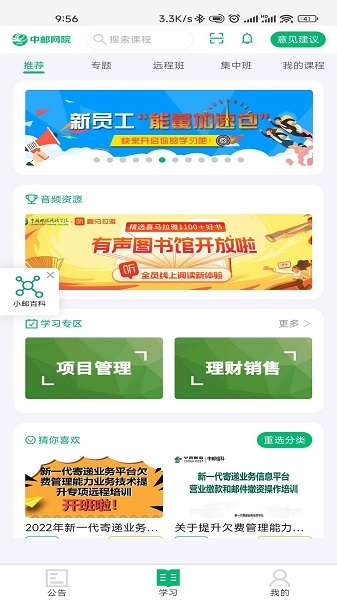 1、权威课程体系:涵盖邮政普遍服务、金融业务、快递物流、合规风险控制等核心领域,内容由内部专家和行业权威机构共同开发。