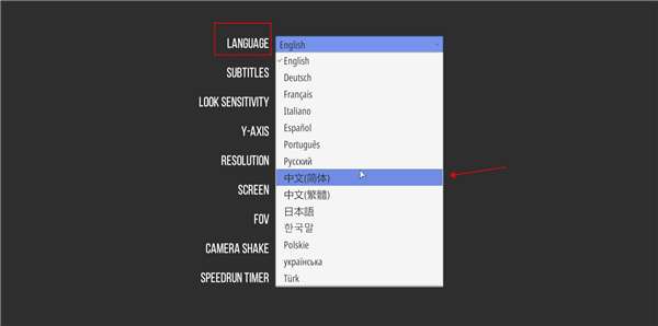 3、接着点击language选项,选择Chinese即可设置为简体中文;