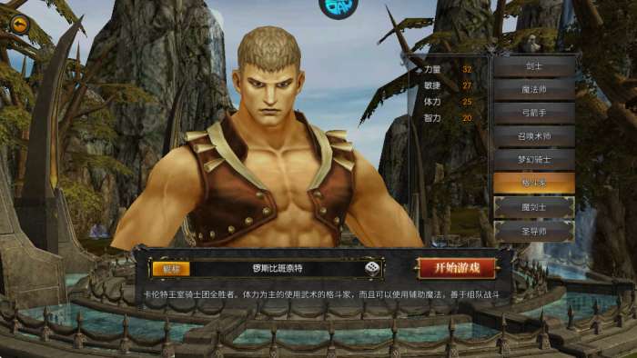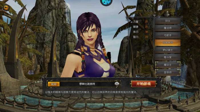 1、创建角色:进入游戏后,选择一个职业并创建一个角色。
