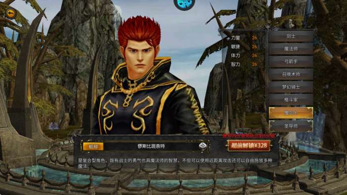 是复合型角色,既有战士的勇气也具魔法师的智慧,不但可以使用近距离攻击还可以自由施放多种魔法。