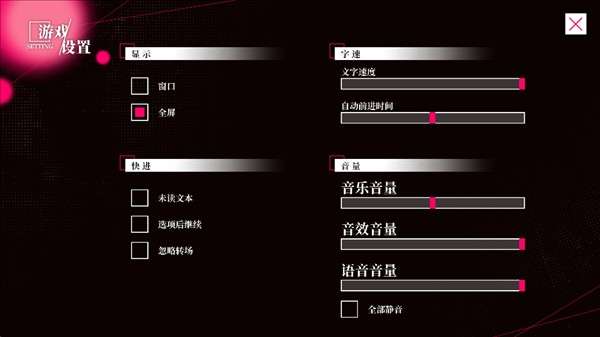1、首次进入游戏时,建议先点击主界面的【设置】选项,根据个人习惯调整音量、文字速度、自动播放等参数,以获得更舒适的游玩体验。