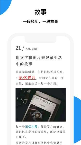 2.根据故事,旧物件和回忆的划分,可以添加图片和文字,支持数据的永久备份,也可以使用多种设备登录;