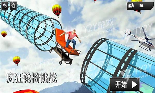 《疯狂轮椅挑战赛》游戏非常的刺激,玩家需要坐上轮椅,从上方极速下降,这里最安全的是玻璃管道,几乎是垂直的,玩家需要控制好轮椅的方向,因为中间有许多地方是空的,不是完全包裹的,一旦飞出去就死定了,疯狂轮椅挑战赛游戏有各种各样的赛道快来挑战吧!