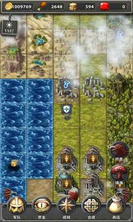 地图是沙盒动态随机生成,没有边界。玩家在海岸边可以填海改变地形,搭建一个陆桥到彼岸去。每块大陆有自己的地貌特征:沙漠,草原,城镇,沼泽,雪山等等,怪物的规模也有区别。