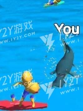 游戏中我们扮演一个调皮的小孩子,我们需要灵活的躲避鲨鱼的攻击。游戏里的鲨鱼攻击是有规律的话,你可以记住攻击的方向以及次数,这样有助于你顺利完成闯关,存活了一定的时间就能进入下一关。