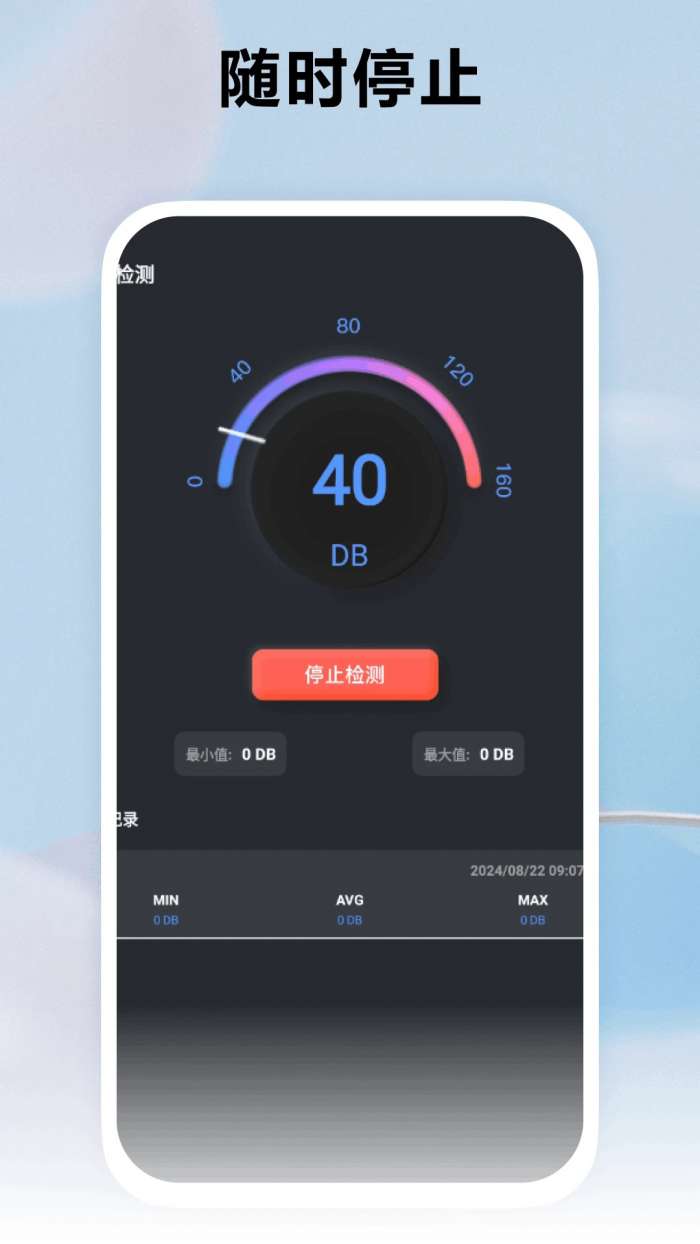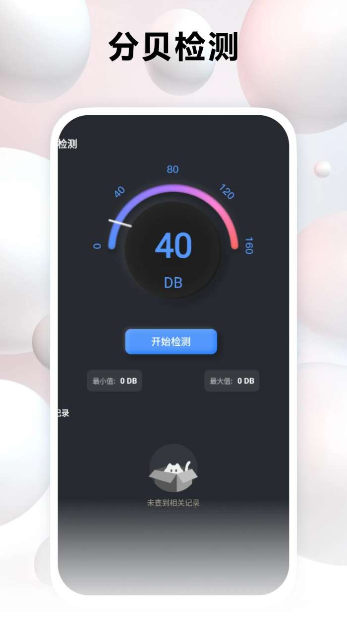 2、噪声检测:精确的分贝测量,提供视觉检测结果,一键式音频播放,提供实时噪声数据。