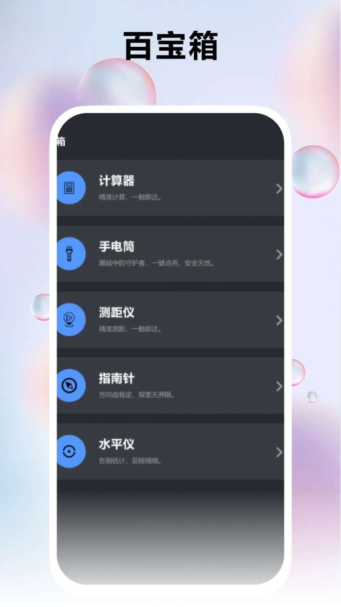 2、丰富的工具箱:集成指南针、水平仪、手电筒等工具,满足用户在不同场景下的多样化需求。