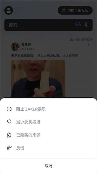 2、然后点击阻止或减少就可以减少推荐此类新闻的次数