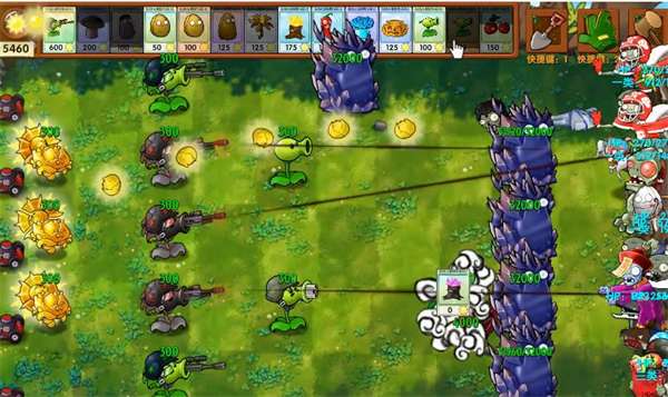 2、使用高于向日葵高度的坚果保护一路,其他路可以都种上“豌豆土豆雷”和“豌豆坚果墙”。