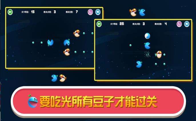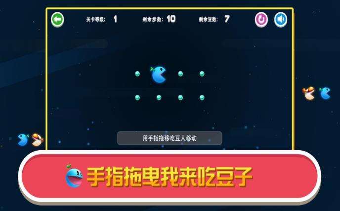 源起吃豆乐无穷让大家玩没玩过吃豆豆的游戏?这款游戏就结合了这种玩法,通过大家的手指头痛了,控制下列角色在屏幕上里面上下左右的移动吃掉在过强里面的豆豆。但是这款游戏不可能简简单单的,就让大家这样操作而设定了有限的步数,控制精灵角色去移动。在这里还得完成任务板块上面的吃豆豆任务。