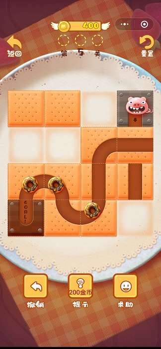 贪吃小肥猪游戏里面大家要控制一个小猪的角色开始完成吃零食的挑战,但是前方的通道都被打乱了需要里左右的滑动来控制饼干方块通道的位置。最后就是把小猪带到终点吧路上的吃的全部都吃掉。就像是在玩一个拼图的游戏一样的,把打散的路线从新连接通畅就可以移动自己的角色了。画面中会有声音椅子背景音乐,点击移动的时候会有移动的特效声音,还有就是吃掉不同的食物发出的声音。