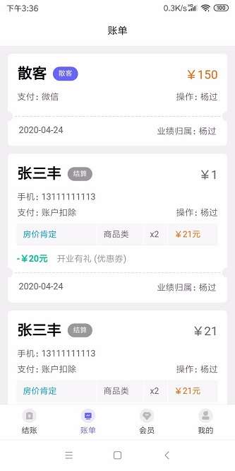 5.成功收到的账单将被保存,您可以在查看账单时了解客户的消费情况;