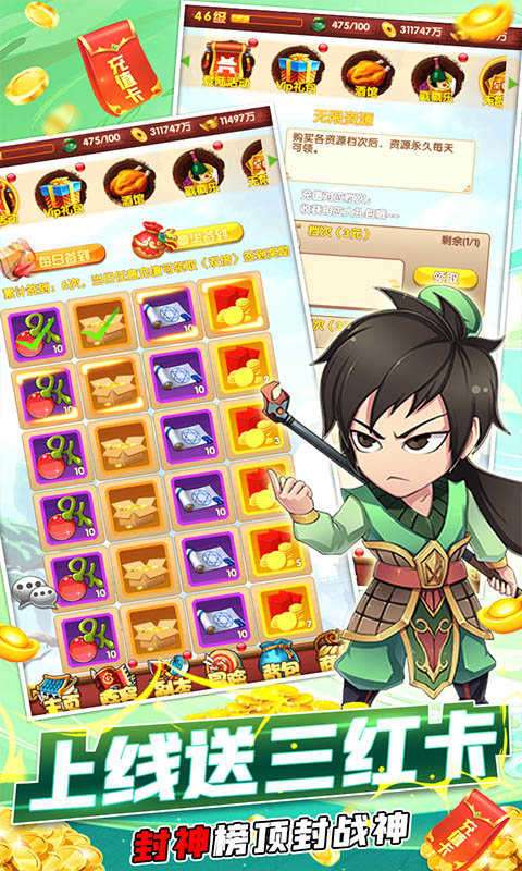 封神来了是一款非常有趣的封神题材卡牌冒险游戏,操作性简单,玩家上线即可领取极品装备,玩家开局就能领取超高游戏礼包,刺激仙魔大战轻松来战,还有超多副本任务玩家们可以在这里尽情的挑战,快来下载封神来了试试吧!