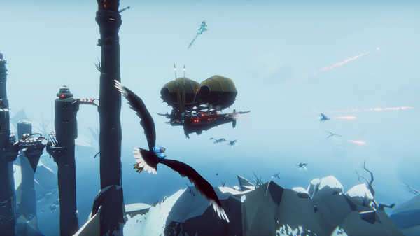 以一个被海覆盖的世界「The Great Ursee」作舞台,玩家扮演骑士「Falconeer」,与你的拍挡巨隼与帝国作战,对抗敌人的空中军团!玩家可以乘着巨隼自由在空中飞翔,探索美丽的世界,与帝国的龙骑士、飞甲虫、大型的飞空艇等等敌人作战,享受着飞上云层,观赏美丽天空的游戏体验。