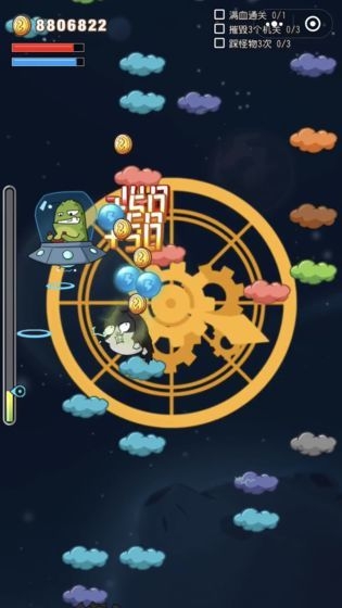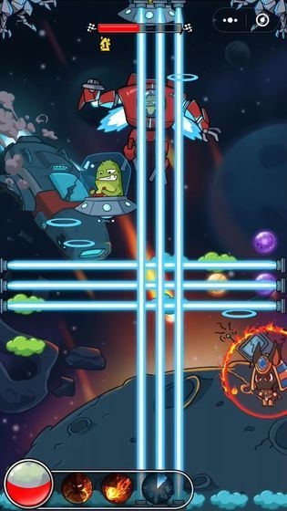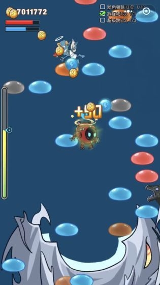 玩家借助弹跳物跳跃走位,拾取攻击弹珠,躲避boss攻击,找准时机发动技能,凭技巧与耐力击败boss;