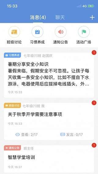 2、家校沟通:家长可以在家长端实时查看通知、作业、成绩和学校表现。